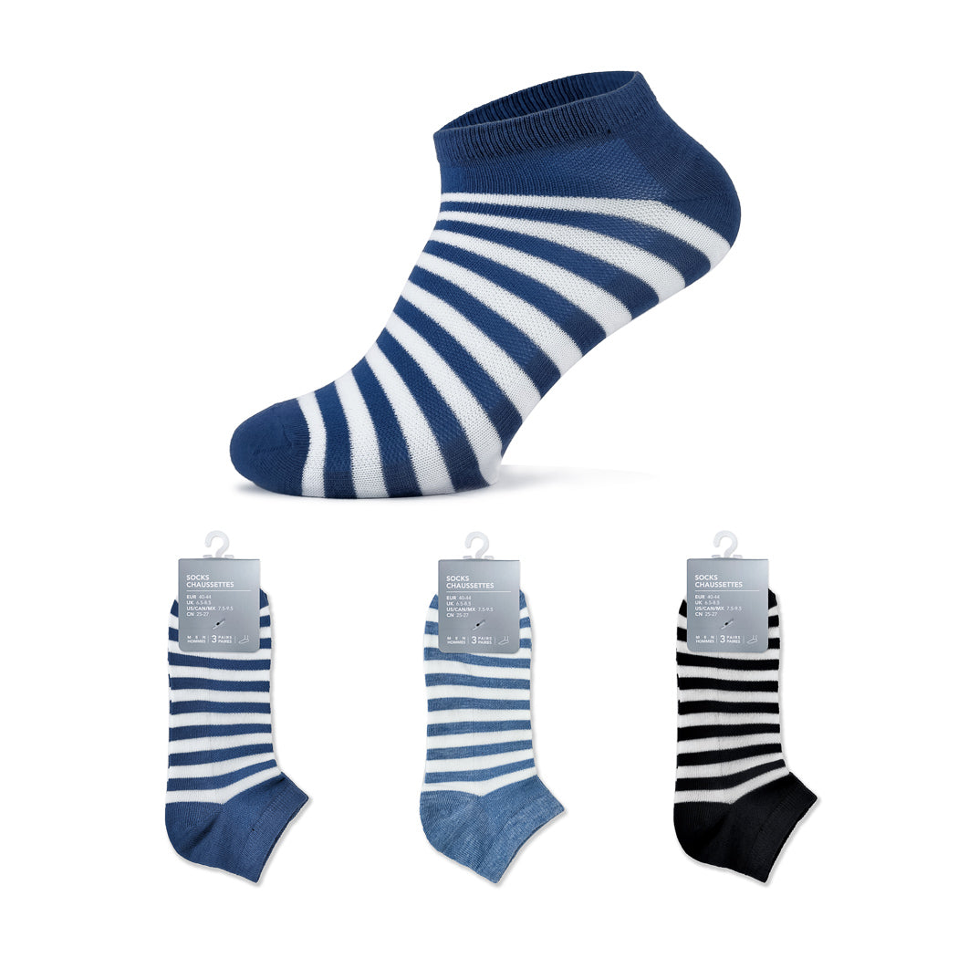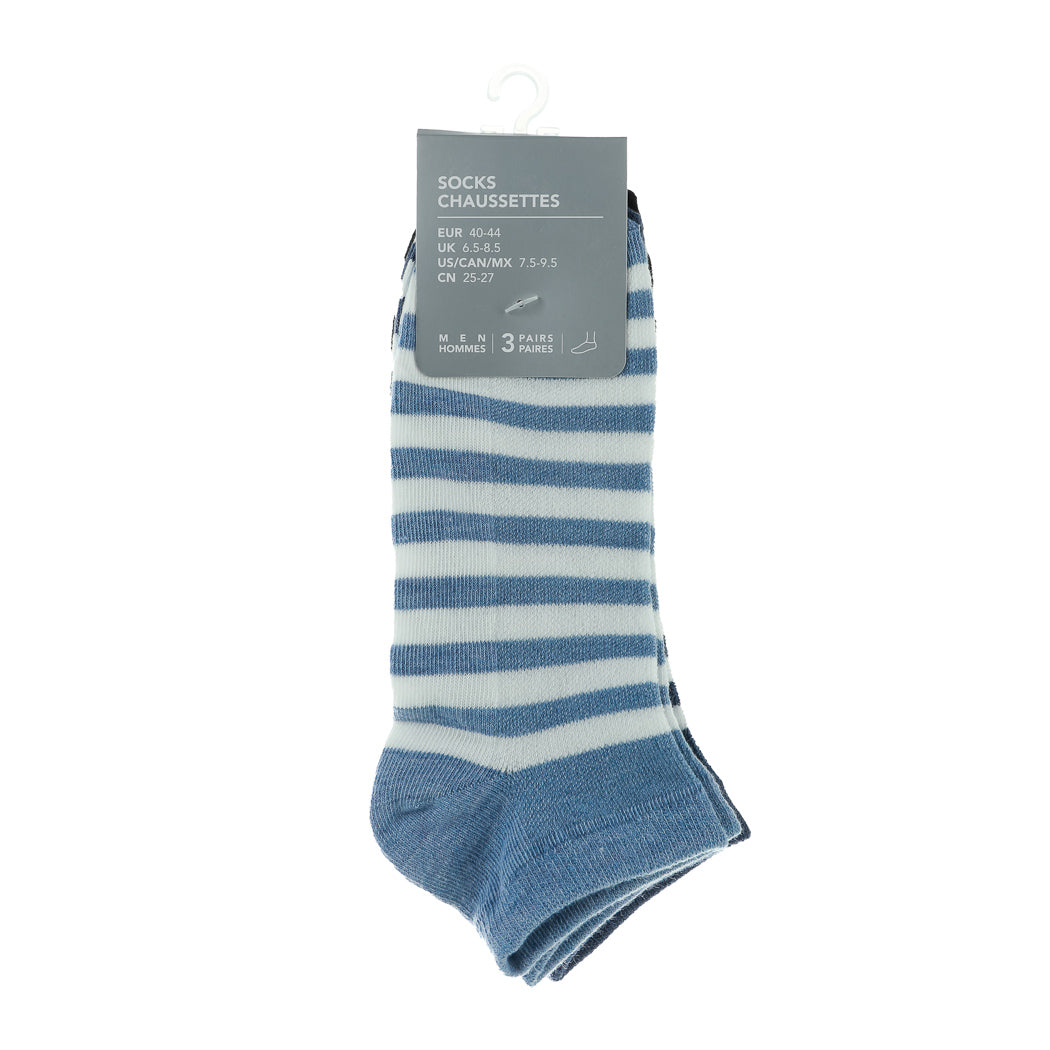 Classic Striped Odor Control Men's Ankle Socks 3 Pairs (Blue)