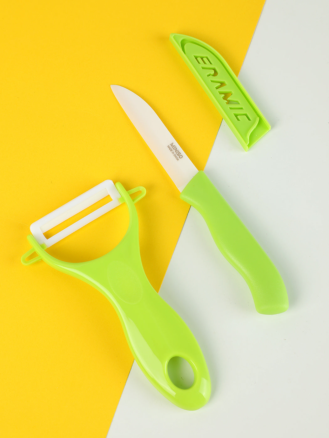 Household Ceramic Knife and Peeler Set (Green)