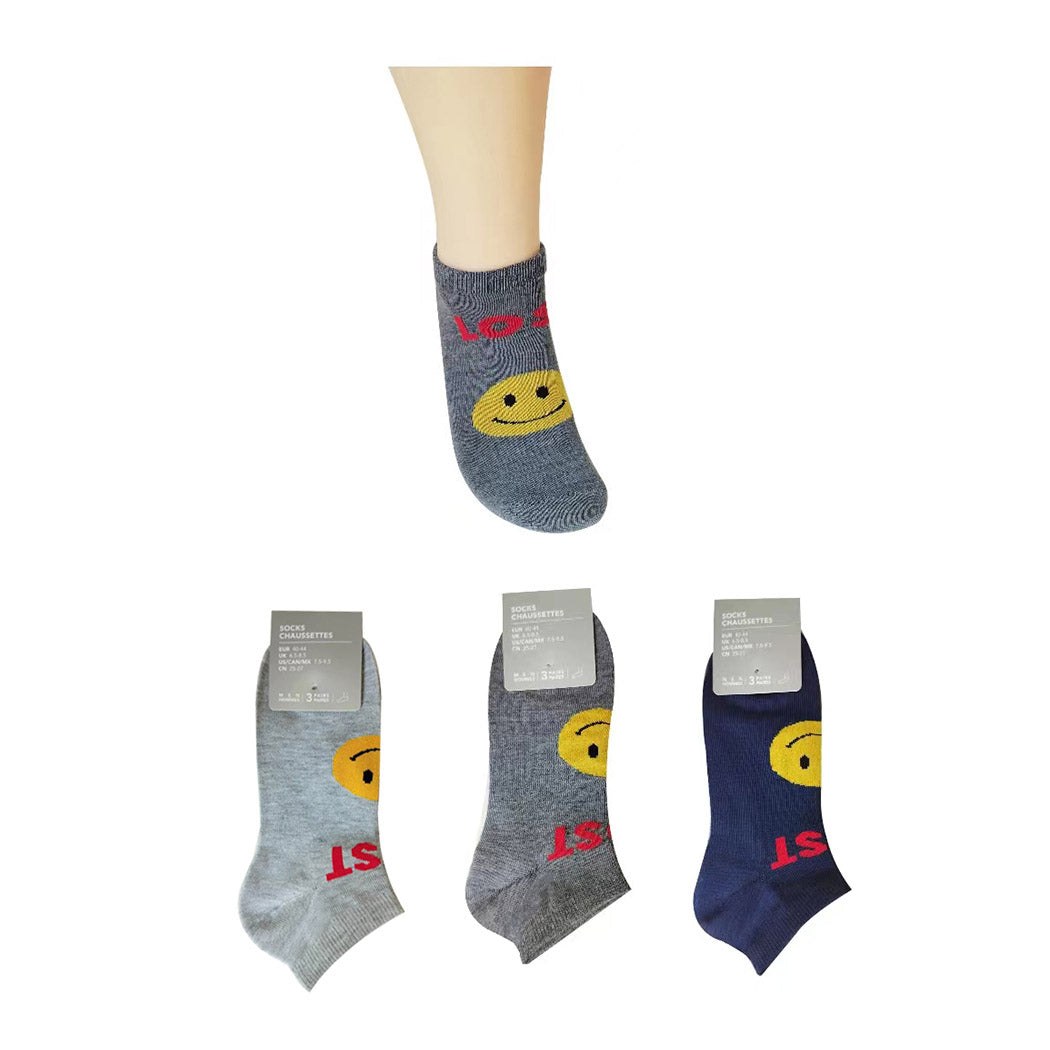 Smile Series Men's Ankle Socks (3 Pairs)(Basic Colors)