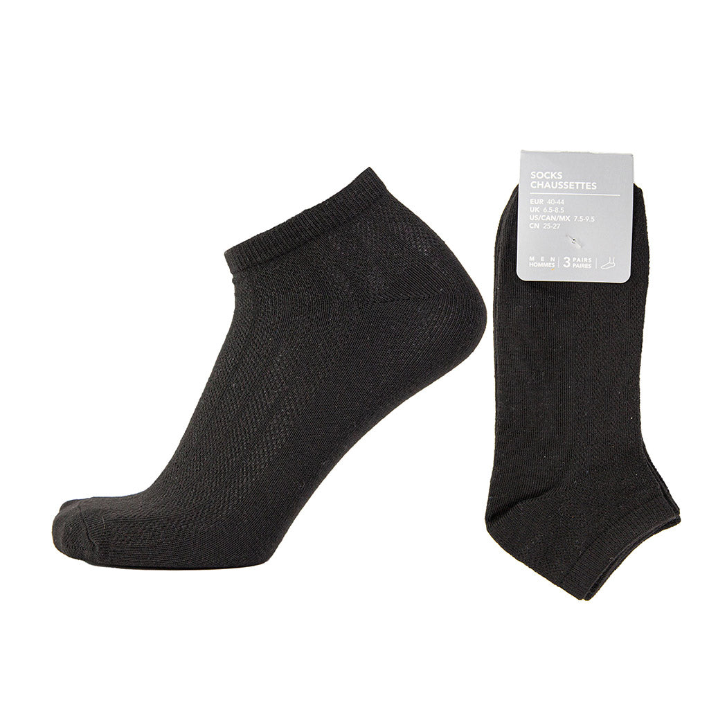 Breathable Mesh Men's Ankle Socks 3 Pairs (Black)